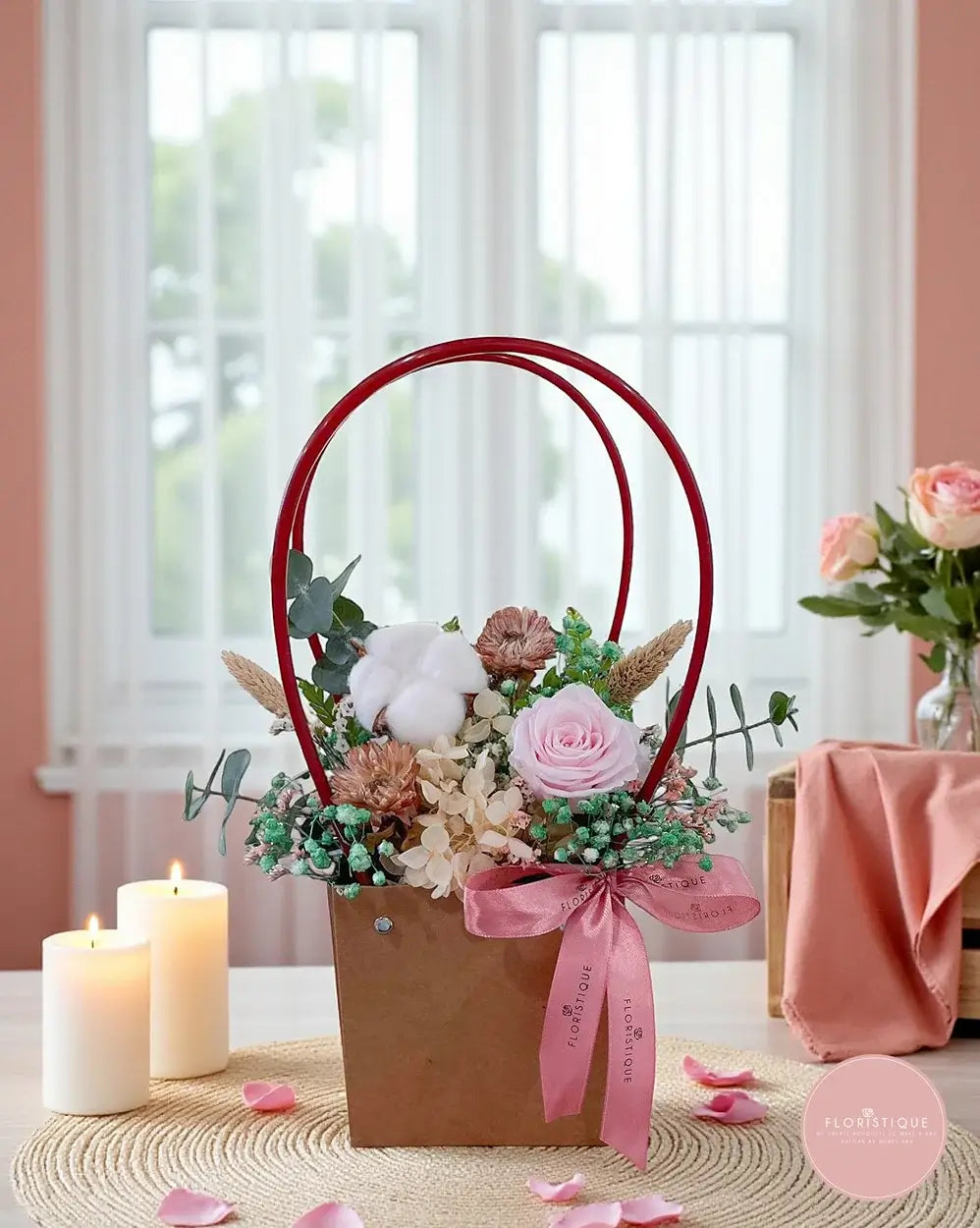 Ideal for birthdays, anniversaries, housewarmings, or as a lasting keepsake, this preserved flower bag is a thoughtful way to convey love and appreciation. Enjoy same-day delivery in Singapore and gift someone a bloom that stays beautiful well beyond the moment.