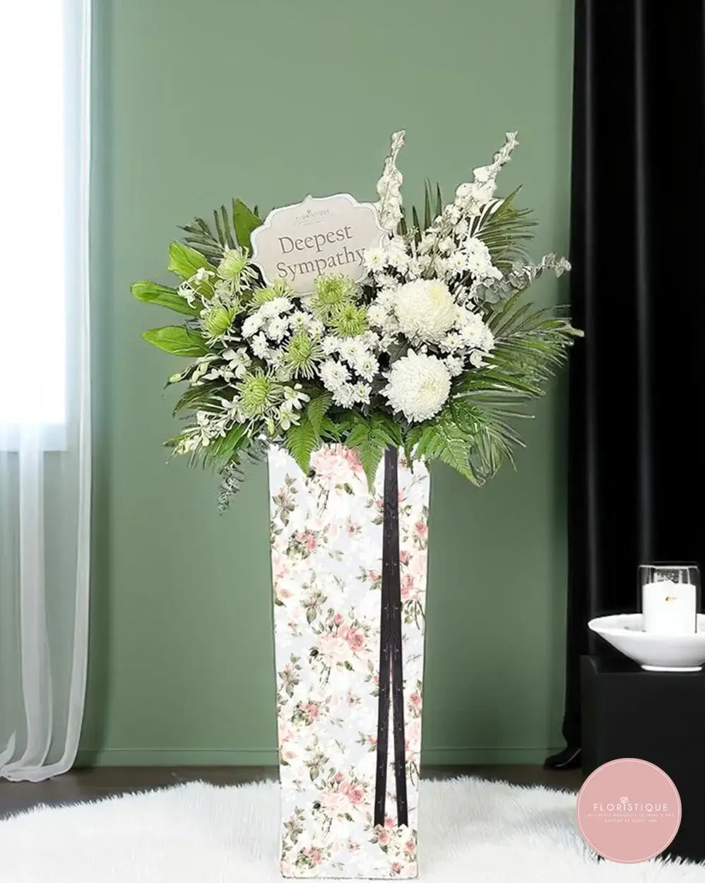 Includes free condolence flower delivery Singapore. A refined and comforting funeral flower stand Singapore to pay tribute to a loved one.