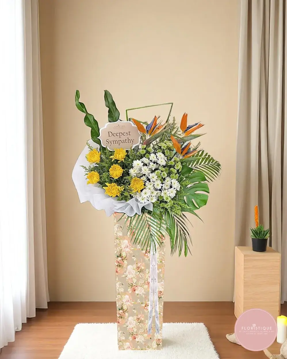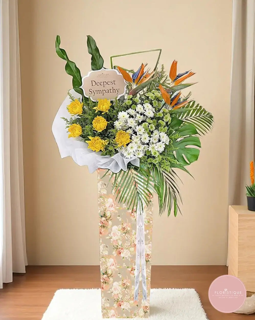 Includes free condolence flower delivery Singapore. A dignified funeral flower stand Singapore option to honour and celebrate a cherished life.