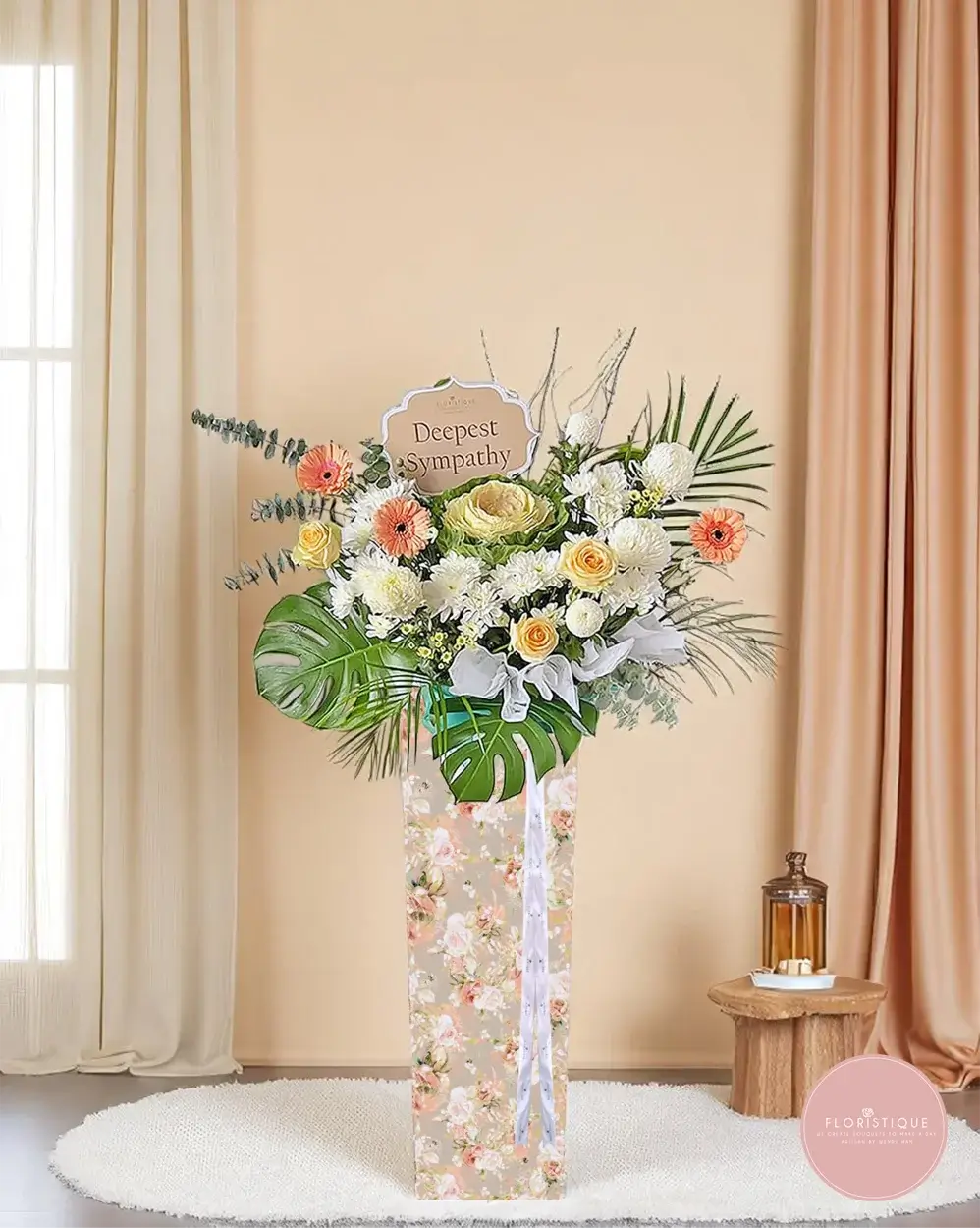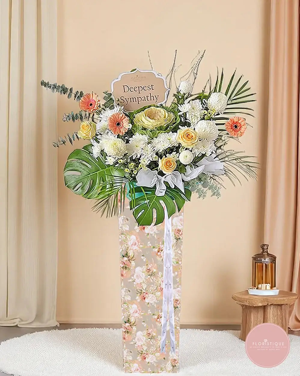 Includes free condolence flower delivery in Singapore. Suitable for expressing heartfelt sympathy through funeral flower stands Singapore or sympathy flowers Singapore.