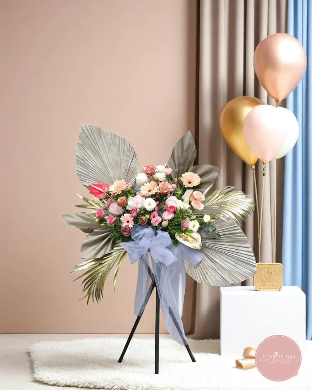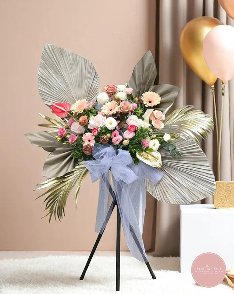 Ideal for businesses seeking standout grand opening flower stands Singapore, this design brings a refined touch to any storefront or event. Enjoy express flower delivery Singapore with this artful creation from a leading Singapore florist.