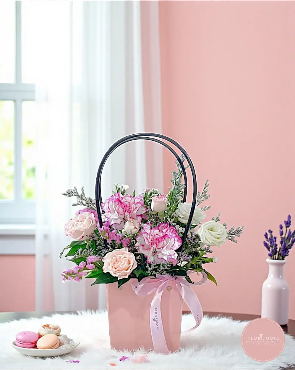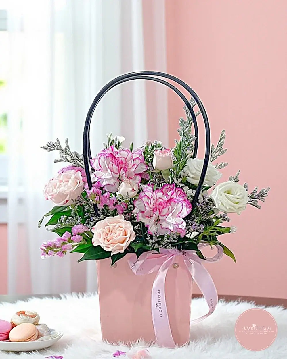 Enjoy same-day flower delivery in Singapore and surprise someone special with this tender and elegant floral bag.