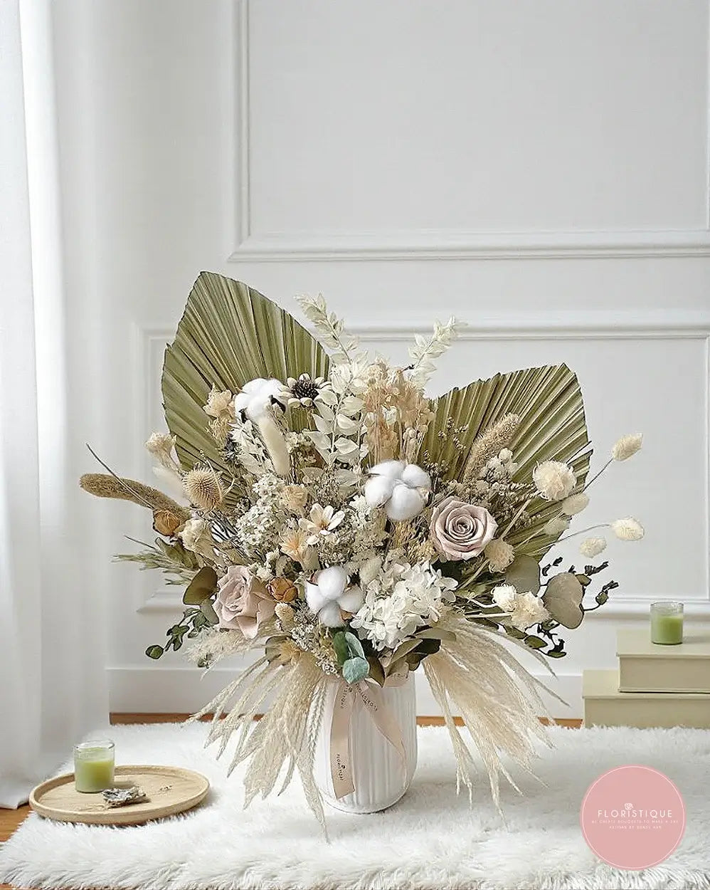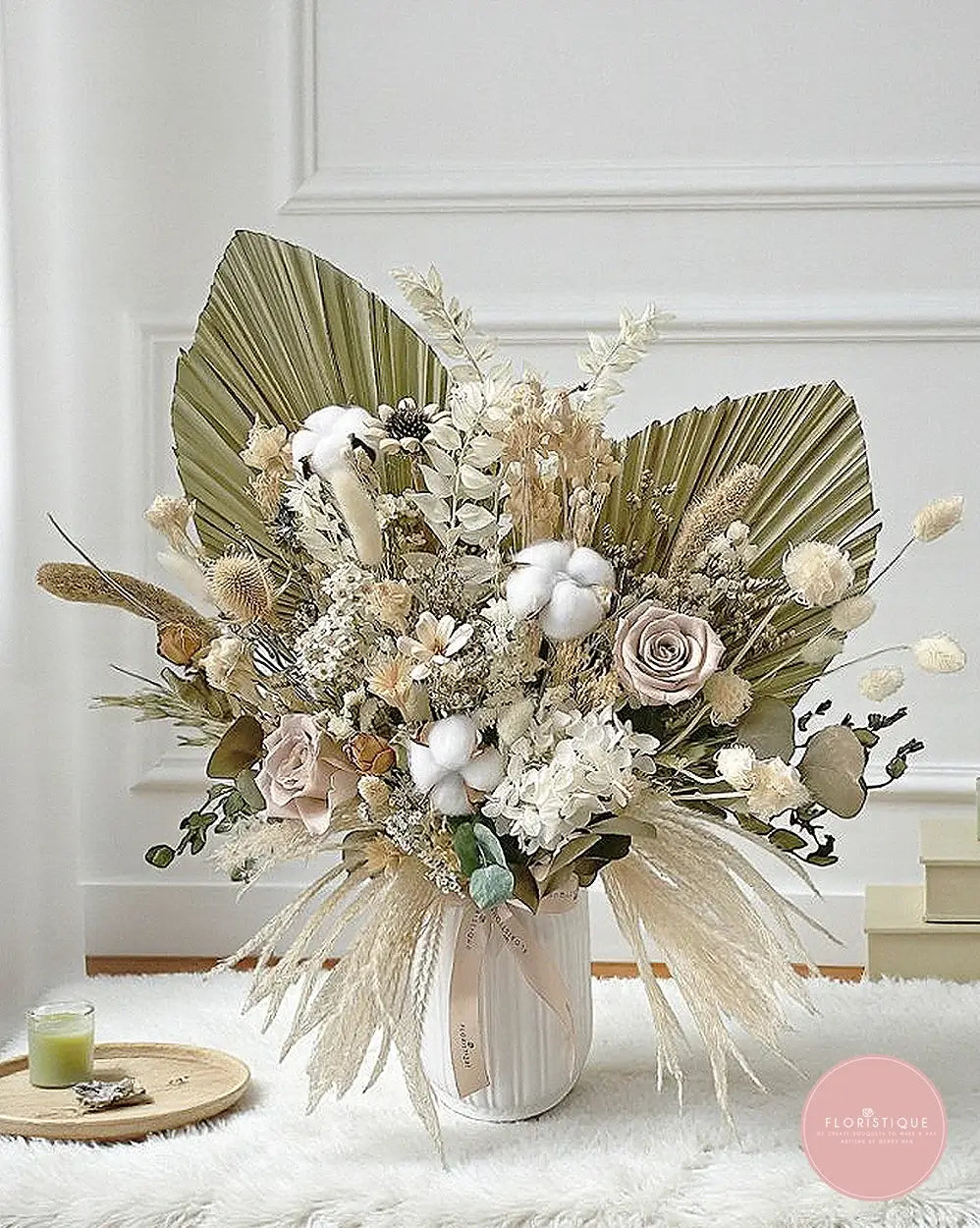 Send enduring style from our online florist in Singapore. Enjoy free same-day flower delivery Singapore-wide—order this dried flower arrangement for timeless home décor or a sophisticated gift today.