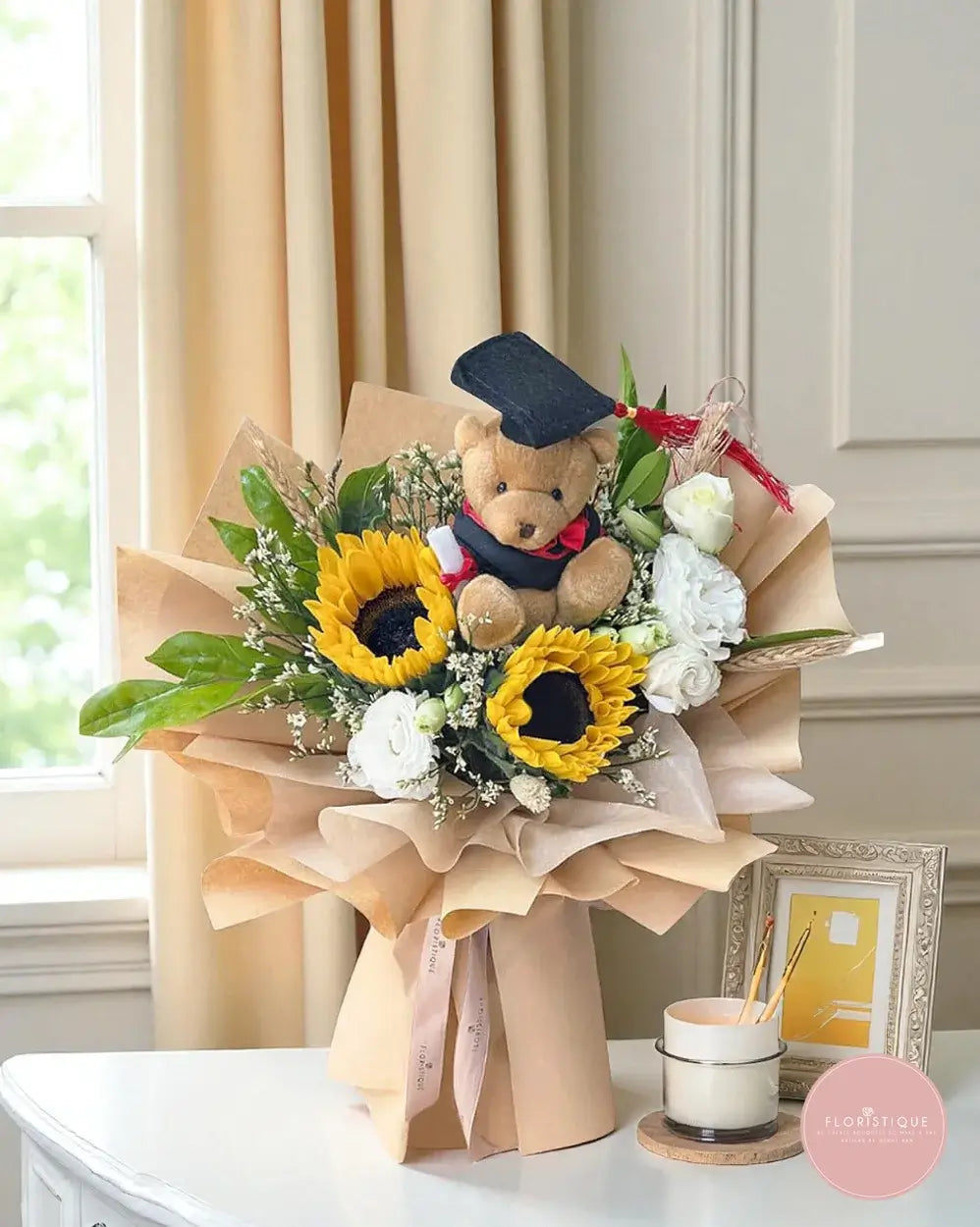 Thoughtfully handcrafted by our florists in Singapore, this graduation bouquet is available with free same day flower delivery Singapore. Uplifting and memorable, it’s a delightful way to send warm wishes and pride on their special day.