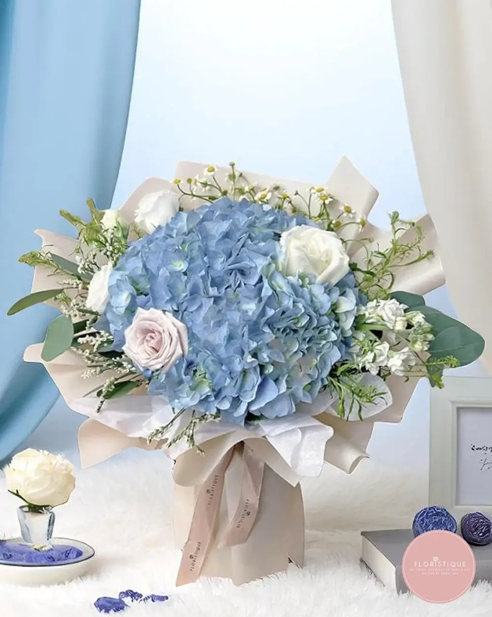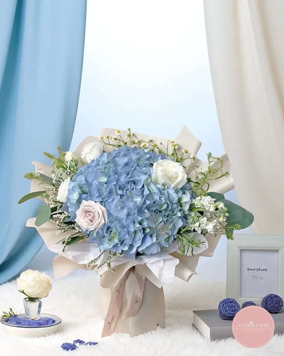 Order this blue hydrangea bouquet from a reliable online florist in Singapore. Enjoy same day flower delivery Singapore-wide and send a refreshing floral surprise that speaks with gentle beauty.