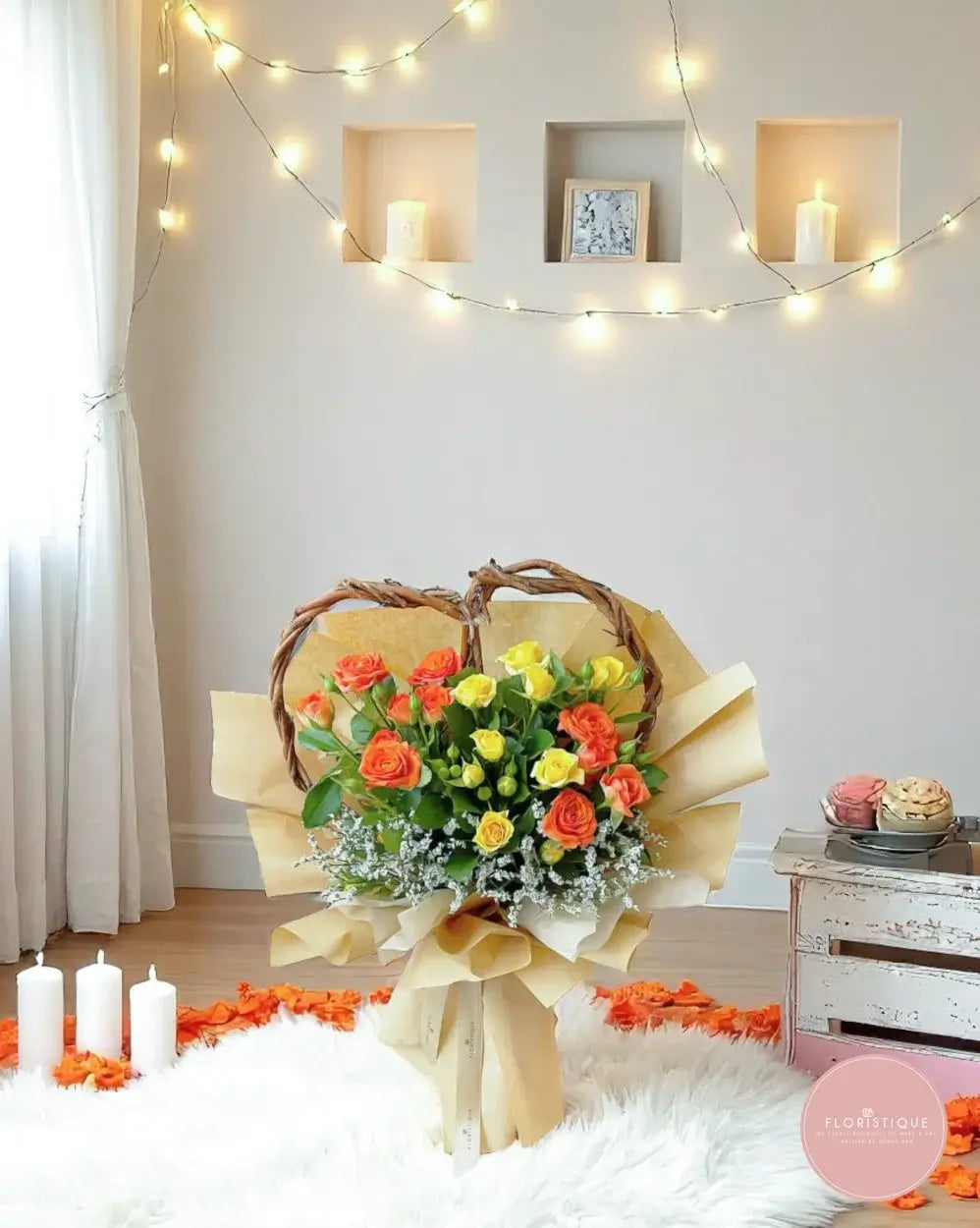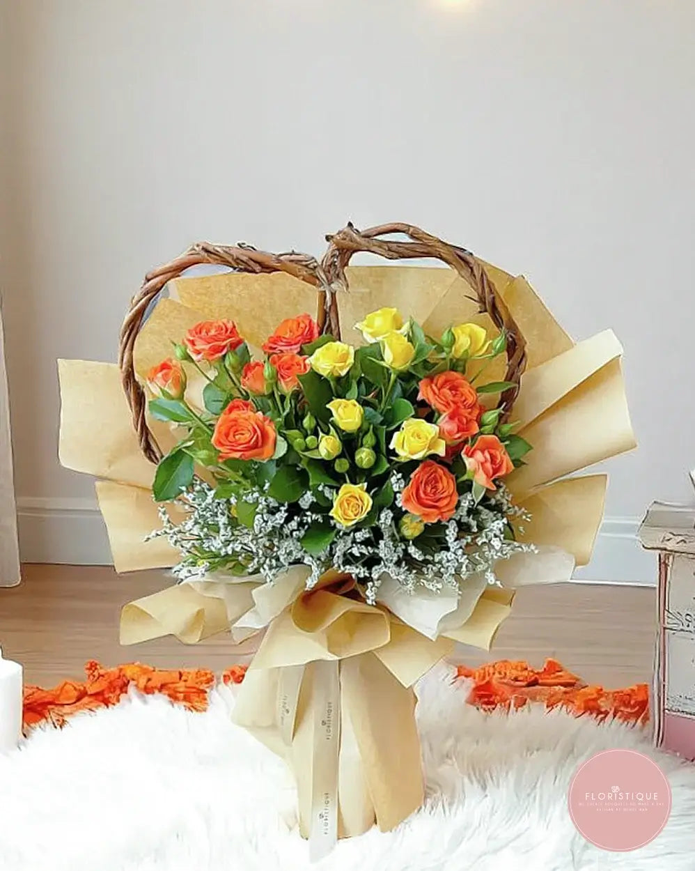 Order your Sunset Heart Basket today for same-day bouquet delivery Singapore and reliable flower delivery Singapore-wide, including spray rose delivery Singapore!