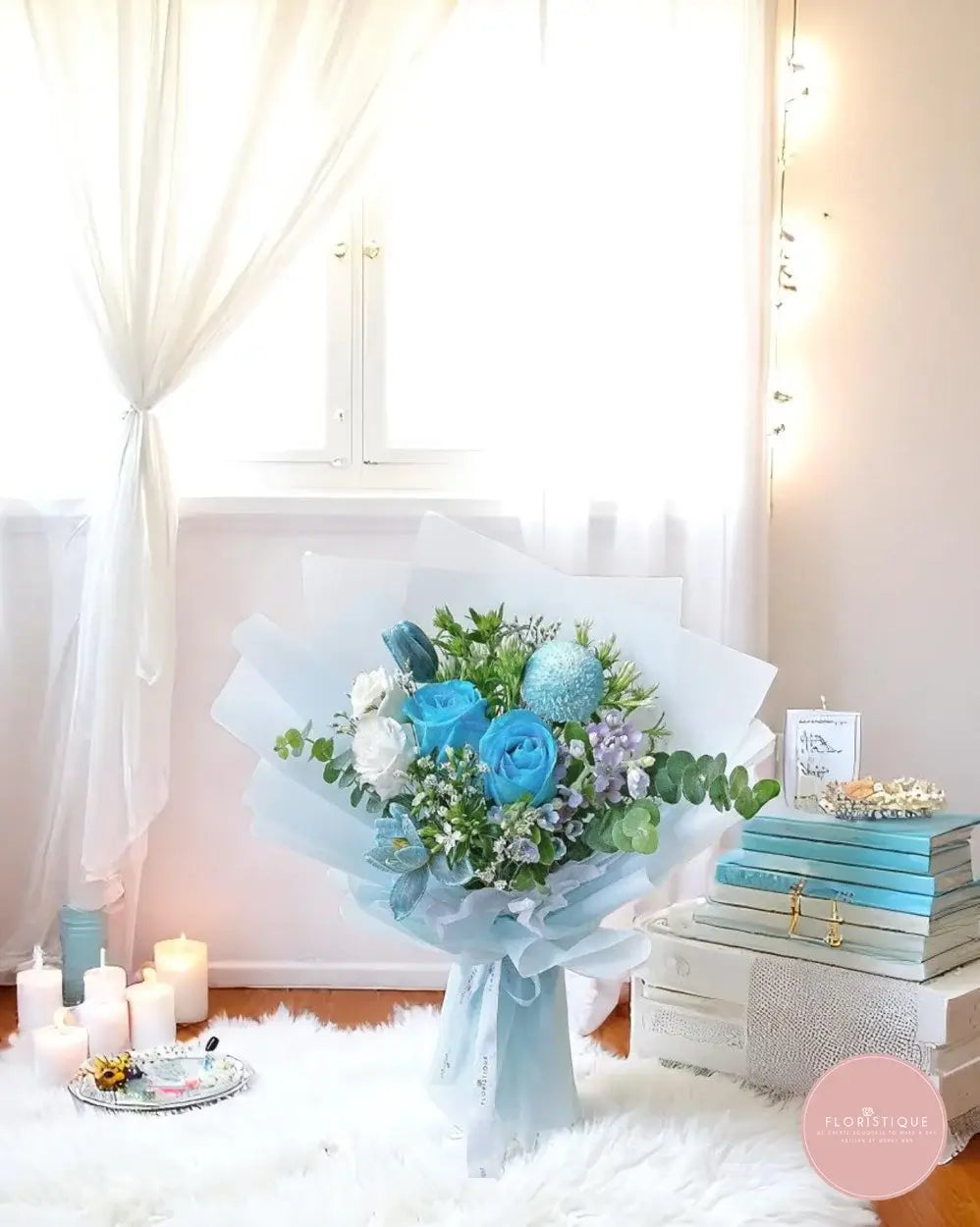 Order your Blue Lagoon Bouquet today for premium blue rose bouquet delivery Singapore-wide, same-day flower delivery Singapore, and expert floristry that brings vibrant blooms right to your door!