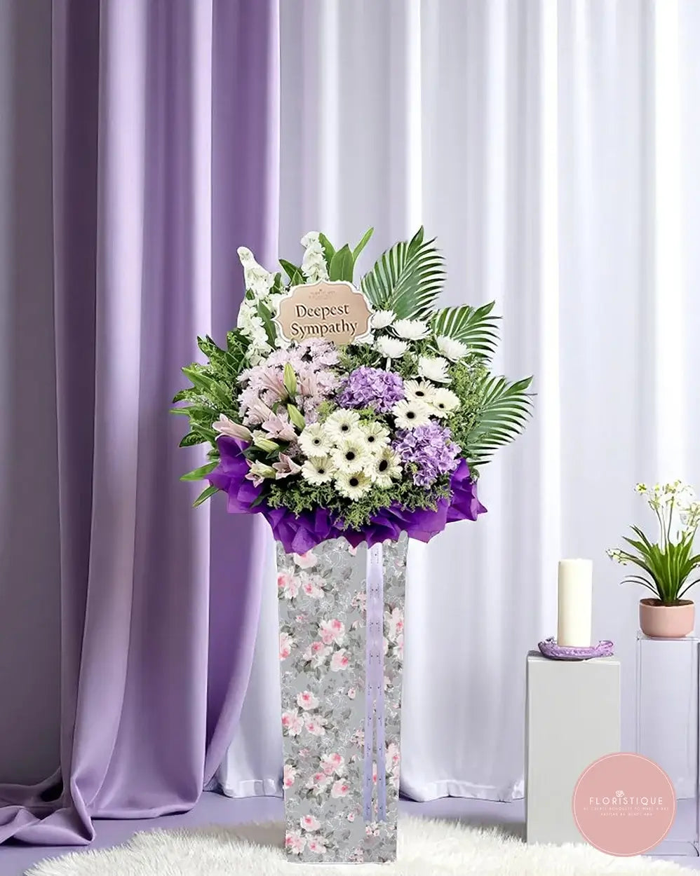 Let your sympathy be felt with this elegant condolence flower stand—free same-day condolence flower delivery in Singapore is available for your peace of mind.