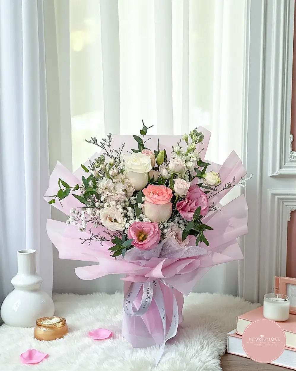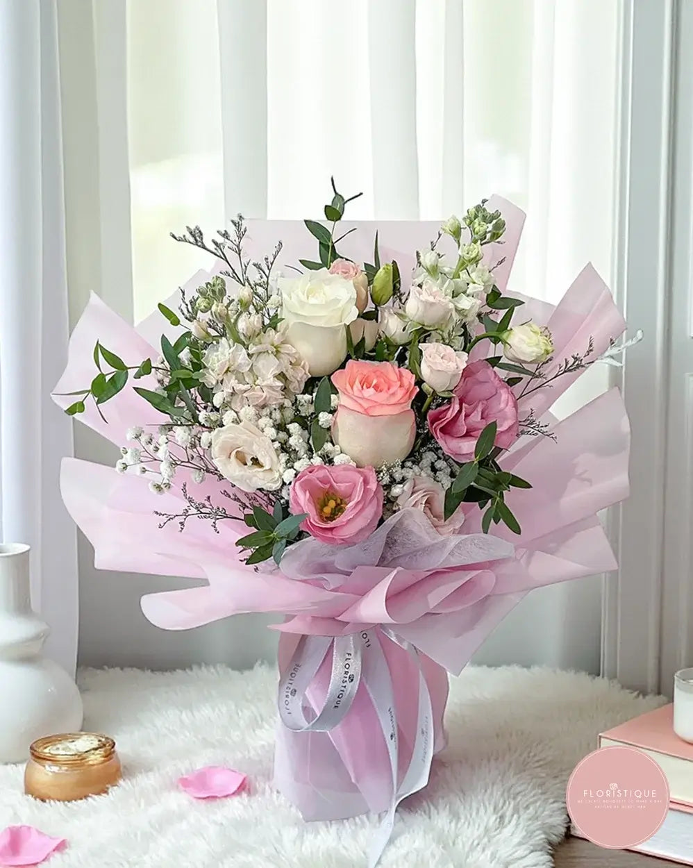 Handcrafted with care by our skilled florists in Singapore, this bouquet comes with free same day flower delivery Singapore. Whether you’re sending love, appreciation, or a thoughtful surprise, this pastel arrangement is a timeless way to convey heartfelt sentiments.