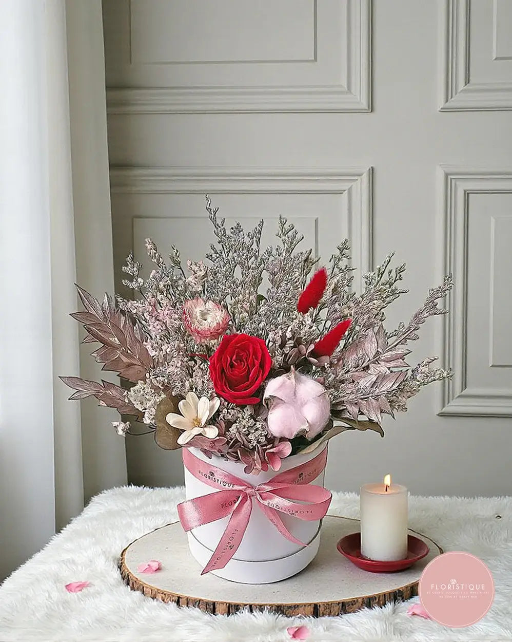 Handcrafted by our online florist in Singapore, this preserved flower arrangement is perfect for birthdays, anniversaries, proposals or a heartfelt “thinking of you.” Enjoy free same-day flower delivery in Singapore from Floristique—your trusted florist Singapore for preserved flowers and elegant gift boxes.