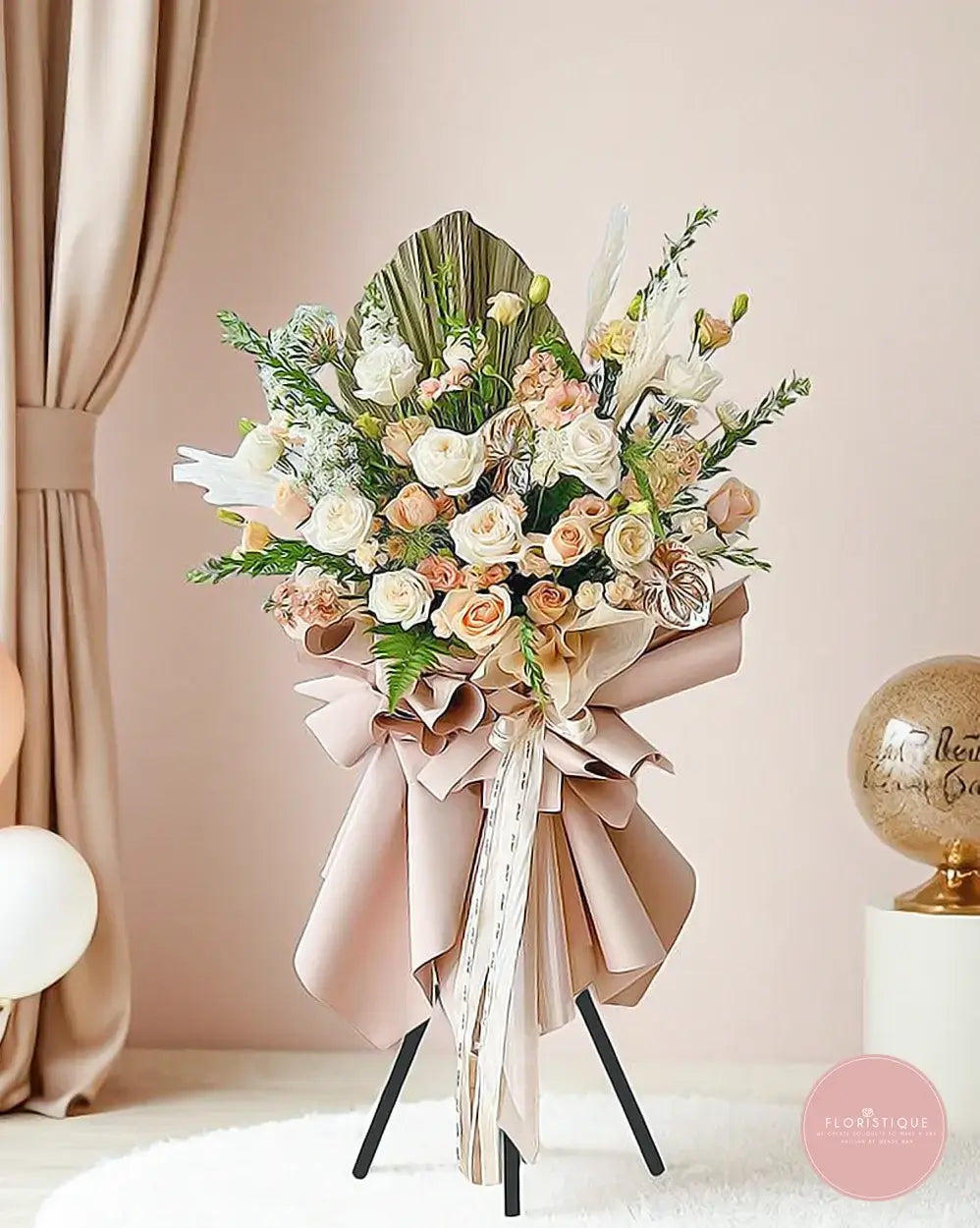 Send your warmest congratulations with this beautifully crafted grand opening flower stand Singapore. Ideal for business openings, this stand is available with free flower delivery Singapore, handcrafted by a trusted florist Singapore.