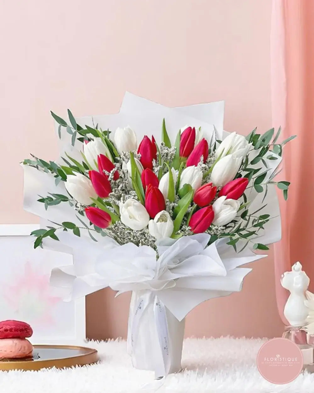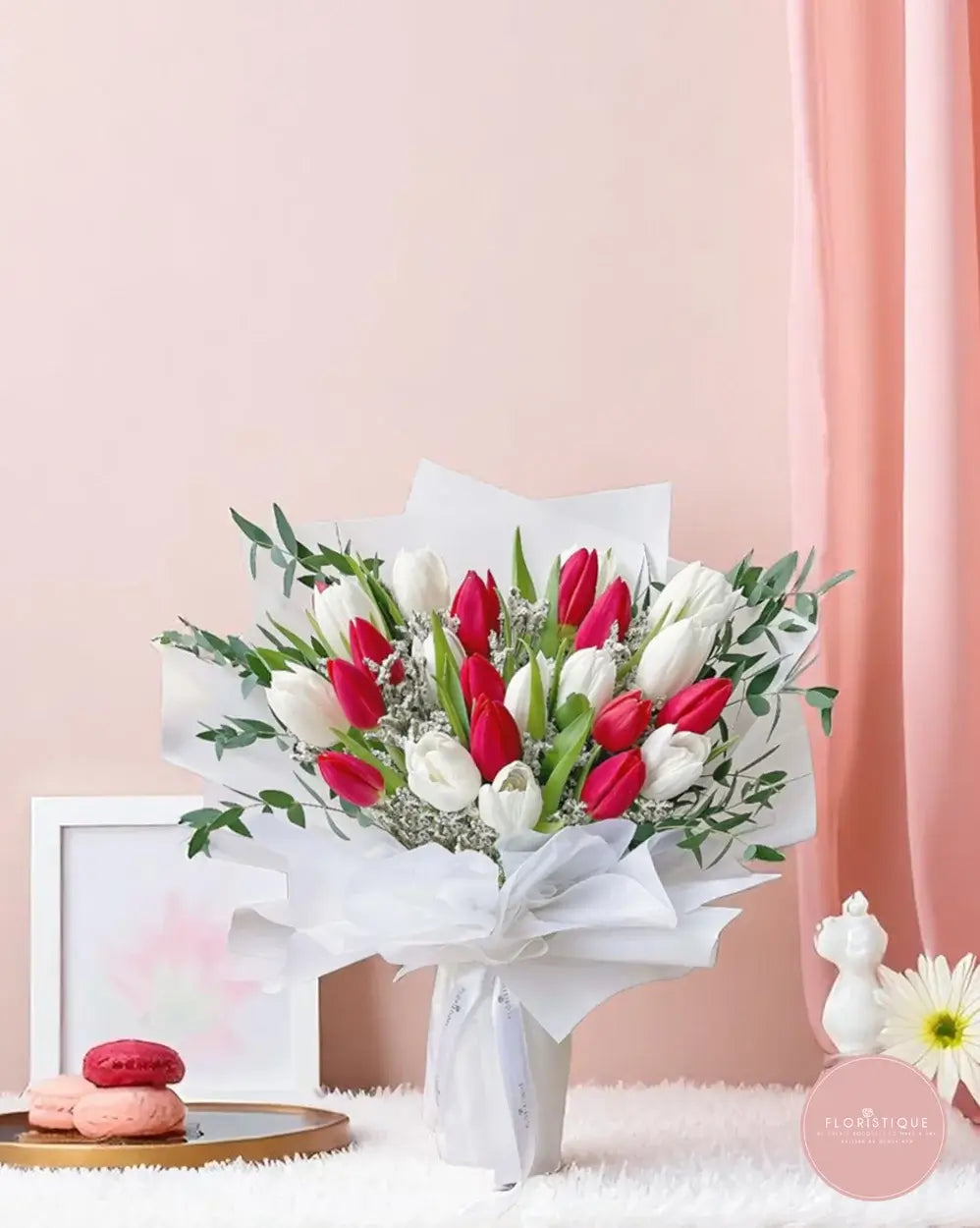 Order this red and white tulip bouquet from a trusted online florist in Singapore. Enjoy same day flower delivery Singapore-wide and express your love with timeless blooms and sophisticated style.
