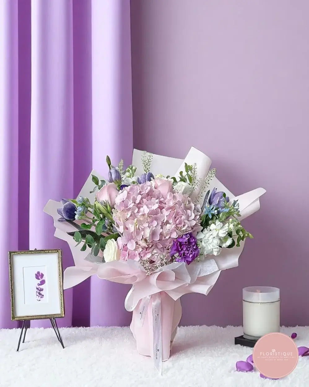 Order this lilac hydrangea bouquet from a trusted online florist in Singapore. Enjoy same day flower delivery Singapore-wide and send a gift that speaks with timeless elegance and fresh floral charm.