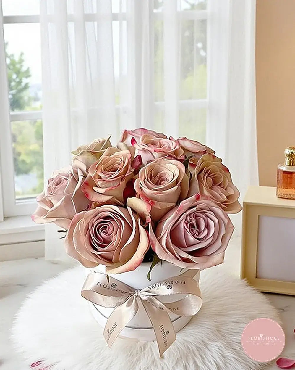 Soft cappuccino roses come together in a warm, romantic arrangement that feels intimate and effortlessly elegant. Finished with gentle wrapping and a graceful ribbon, the creamy mocha tones create a calm, luxurious mood that’s both modern and deeply affectionate.