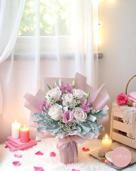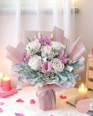 Surprise someone special today—order your Soft Blush & Silver Bouquet for prompt bouquet delivery Singapore-wide with our trusted florist Singapore customers love!