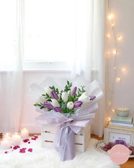 Reserve your Purple & Ivory Tulip Dream today for seamless tulip bouquet Singapore delivery and reliable flower delivery Singapore-wide!