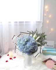Elevate your space with our Midnight Elegance Hydrangea Bouquet. Order now for reliable hydrangea bouquet delivery Singapore-wide, same-day flower delivery, and premium floral delivery services!