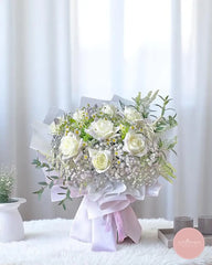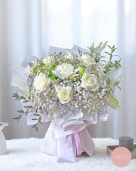 Order this white rose bouquet from a trusted online florist in Singapore. Enjoy same day flower delivery Singapore-wide and let your gesture of love and peace bloom beautifully.