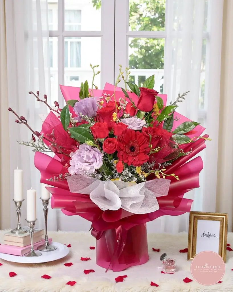 Perfect for birthdays, anniversaries, graduations or festive celebrations, this vibrant arrangement is made to impress and delight. Send this Crimson Celebration Bouquet with Floristique’s same-day flower delivery in Singapore to surprise someone special.