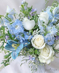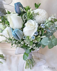 Bridal Bouquet . 2x Small Bridesmaid Bouquet . White Roses . Eustomas . Delphinium . Tulips . Fillers & Foliage