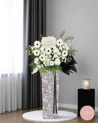 Comes with free condolence flower delivery Singapore. A dignified and meaningful funeral flower stand Singapore to convey your deepest sympathies.