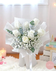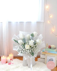 Order your Pure Harmony White Rose Bouquet today for premium white rose bouquet delivery Singapore and same-day flower delivery Singapore-wide!