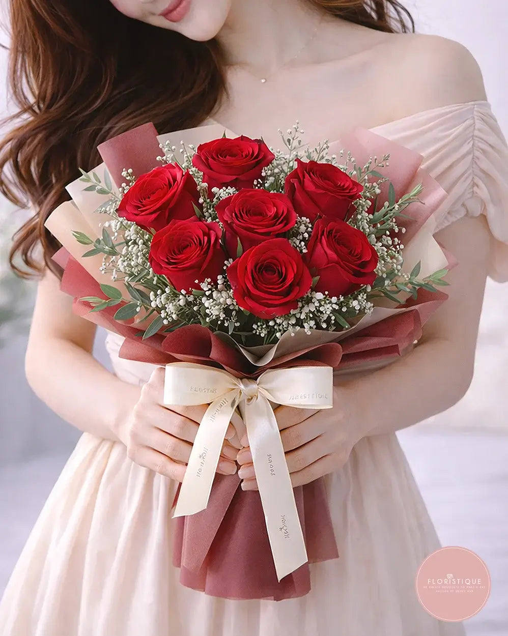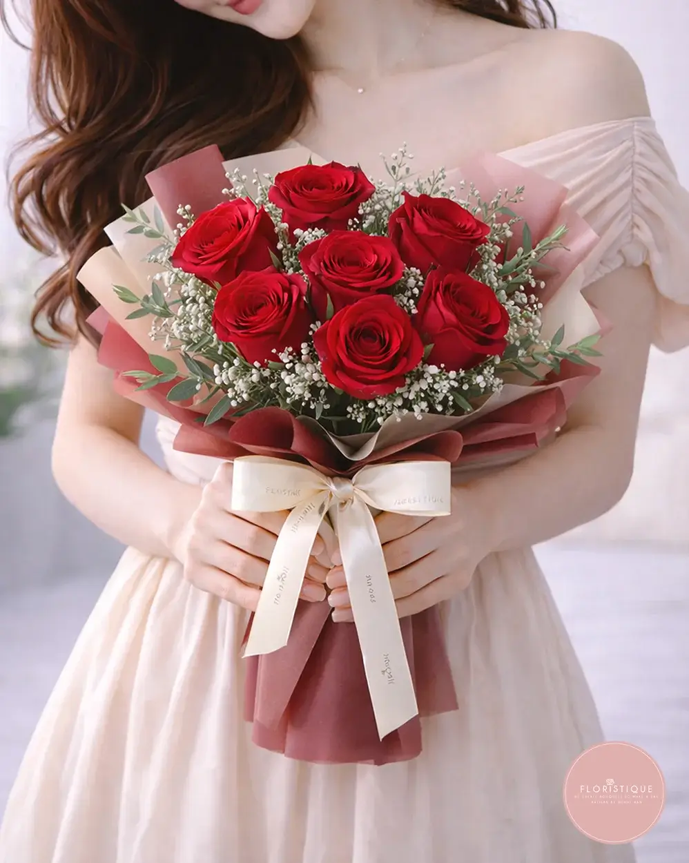 Wrapped in layered blush and deep rose-toned paper and finished with a graceful ribbon, this bouquet is perfect for anniversaries, romantic surprises, or meaningful celebrations. Enjoy reliable flower delivery in Singapore with a trusted florist, and let this classic arrangement express love, passion, and heartfelt emotions.