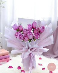 Beautifully arranged by a florist in Singapore, this bouquet comes with free flower delivery Singapore-wide. A top choice for purple rose bouquets and sophisticated flower gifts that leave a lasting impression.