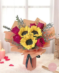 Order your Sun-Kissed Fuchsia Bouquet today for same-day bouquet delivery Singapore and reliable flower delivery Singapore-wide—ideal for sunflower bouquet delivery and rose bouquet delivery island-wide!