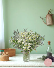 A breezy and charming arrangement featuring an abundance of fresh chamomile blooms nestled among lavender-hued fillers and lush greenery. This rustic yet elegant bouquet brings a calming countryside feel, ideal for expressing warm wishes or simply brightening a space with natural cheer.