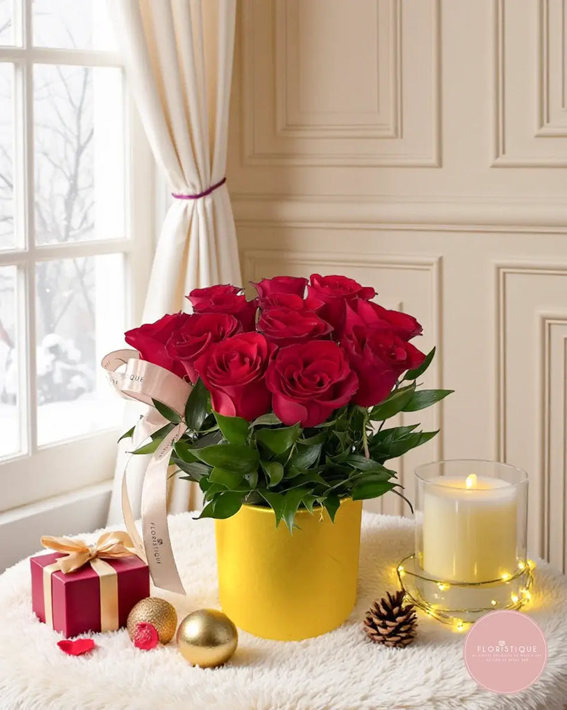 Perfect as a Christmas gift, year-end thank-you or romantic surprise, this compact rose display is easy to place and effortlessly stylish. Send this Golden Noel Rose Pot with Floristique’s reliable same-day flower delivery service in Singapore for a memorable festive gesture.