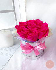 Savor the everlasting beauty of love with our preserved roses collection – Nine Everlasting Preserved Hot Pink Roses showcased in a round box. This exquisite arrangement exudes passion and grace, capturing the essence of enduring love. Elevate your Valentine's Day with the gift of eternal romance and enchantment.