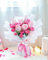 An alluring blend of soft pink tulips and rose sprays, this bouquet exudes elegance and femininity. Wrapped in pastel pink with a charming pink ribbon, it captures the essence of heartfelt affection and gentle celebration. Ideal for birthdays, anniversaries, or simply to say “I’m thinking of you.”