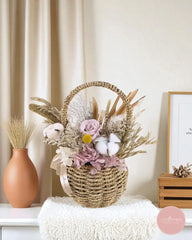 Ideal for home styling or thoughtful surprises, this preserved flower basket is a unique choice for anyone seeking dried flower arrangements, everlasting blooms, or rustic-style flower delivery Singapore from a trusted florist.