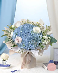 Order this blue hydrangea bouquet from a reliable online florist in Singapore. Enjoy same day flower delivery Singapore-wide and send a refreshing floral surprise that speaks with gentle beauty.