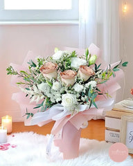 Order your Soft Blush & Ivory Dream today from the florist Singapore trusts for seamless flower delivery Singapore-wide and same-day bouquet delivery across the island!