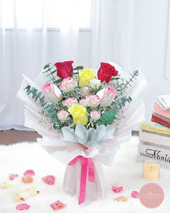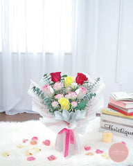 Celebrate birthdays or anniversaries with our Sunshine Bliss Bouquet, a delightful arrangement of six roses and spray roses in a cheerful fusion of yellow and pink. The vibrant yellow roses symbolize joy, while the blush pink tip spray roses add a touch of romance. A radiant expression of happiness from your trusted florist in Singapore, available with reliable flower delivery to make every celebration unforgettable.