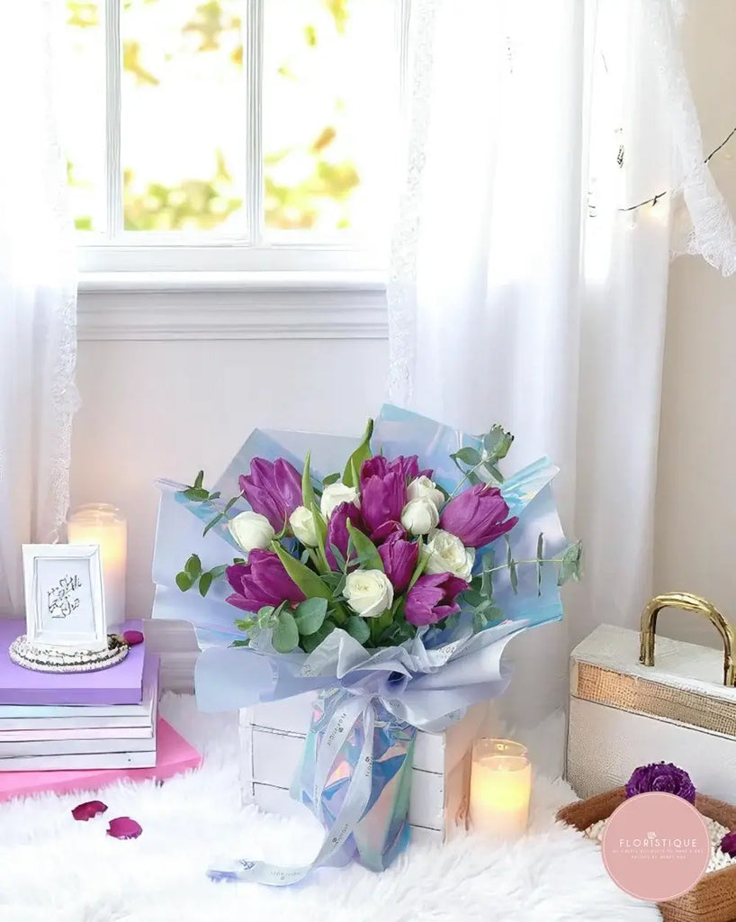 Secure your Lavender Dream Tulip Bouquet today for same-day tulip bouquet delivery Singapore-wide and reliable flower delivery Singapore!