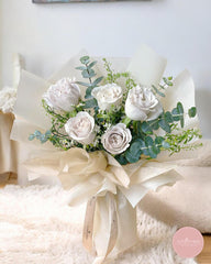 A stunning bouquet of Menta roses, perfectly complemented by delicate white accents and lush greenery. This elegant arrangement is wrapped in soft ivory paper, creating a sophisticated and timeless gift ideal for expressing admiration and love on any special occasion. A refined floral choice from your trusted florist in Singapore, complete with prompt flower delivery to make heartfelt moments even more memorable.