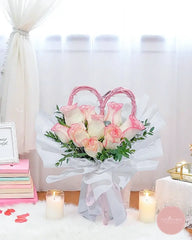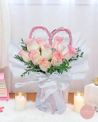 Elegant and romantic, this bouquet features blush pink-tipped roses arranged with lush greenery and framed with charming heart-shaped handles. A symbol of love, admiration, and grace, it’s the perfect gift for anniversaries, Valentine’s Day, or to surprise someone special with a heartfelt gesture.