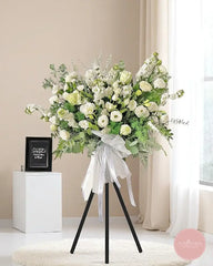 Perfect for wakes and memorials, this arrangement offers a dignified way to honour a life well lived. Enjoy free condolence flower delivery in Singapore, with islandwide same-day service available for funeral flower stands.