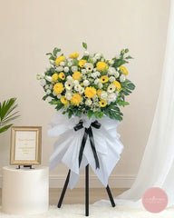 Order this condolence flower stand with free same-day funeral flower delivery in Singapore. Ideal for wakes, memorials, and sympathy occasions, it conveys your deepest condolences with grace.