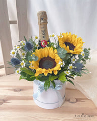 Sunflower . Daisy . Fillers & Foliage . 20cl Moet Champagne